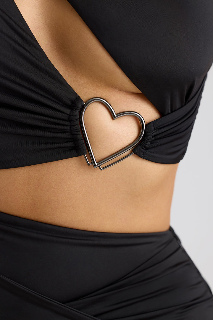 Siyah Tek Kollu Kesikli Gece Elbisesi