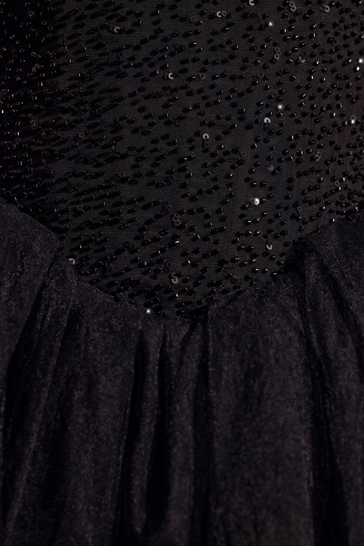 Siyah Süslemeli Korse Tül Etek Mini Elbise