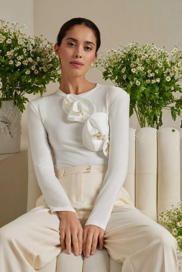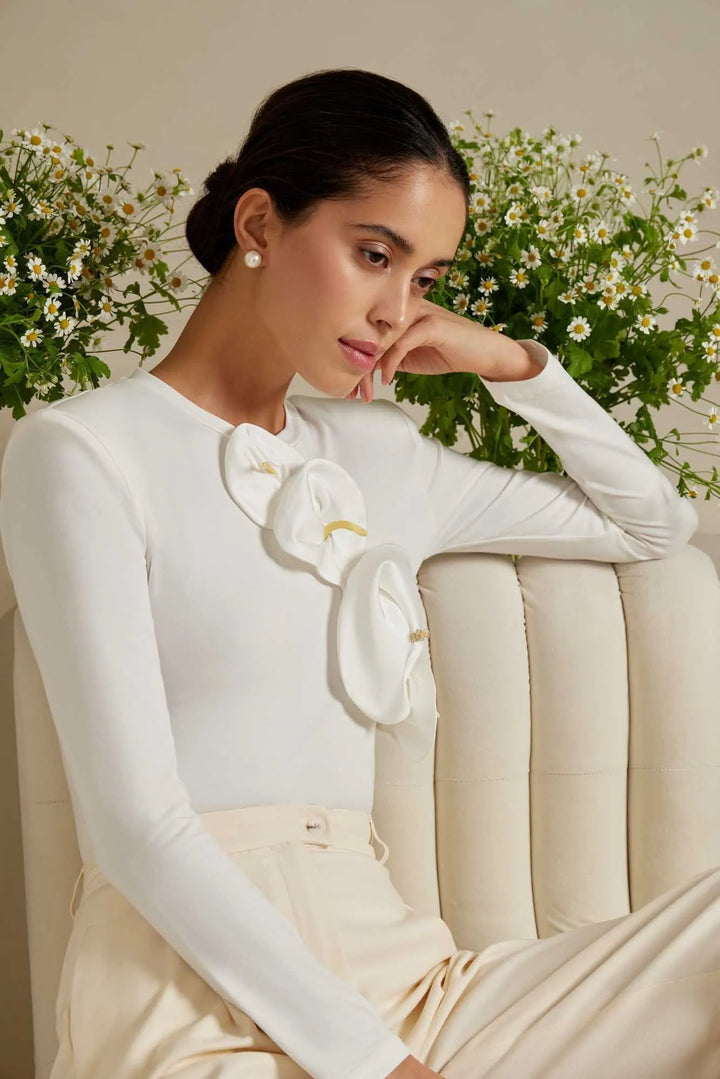 Çiçek Detaylı Örme Bodysuit