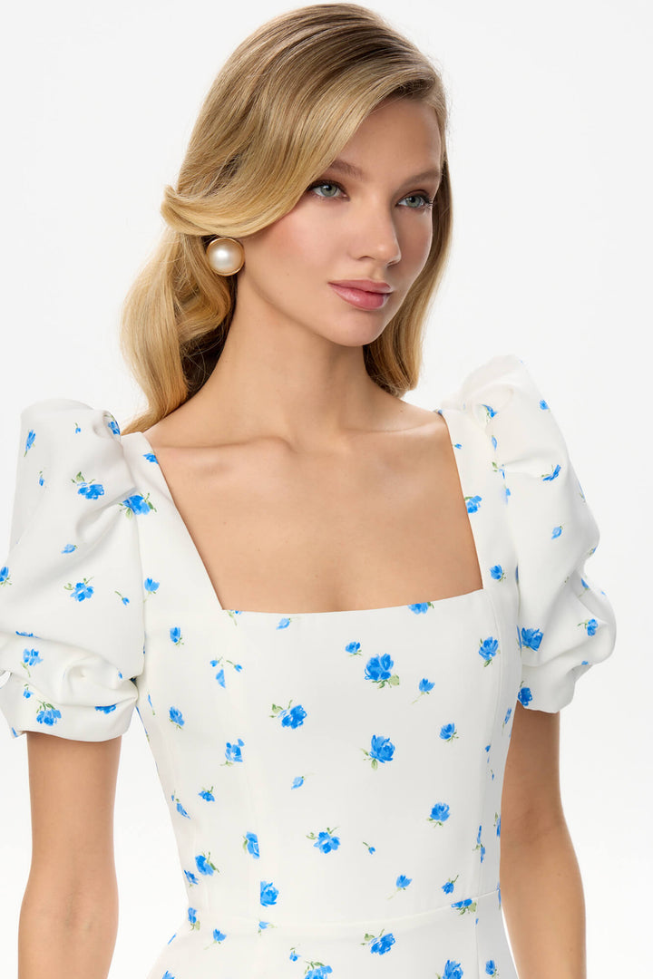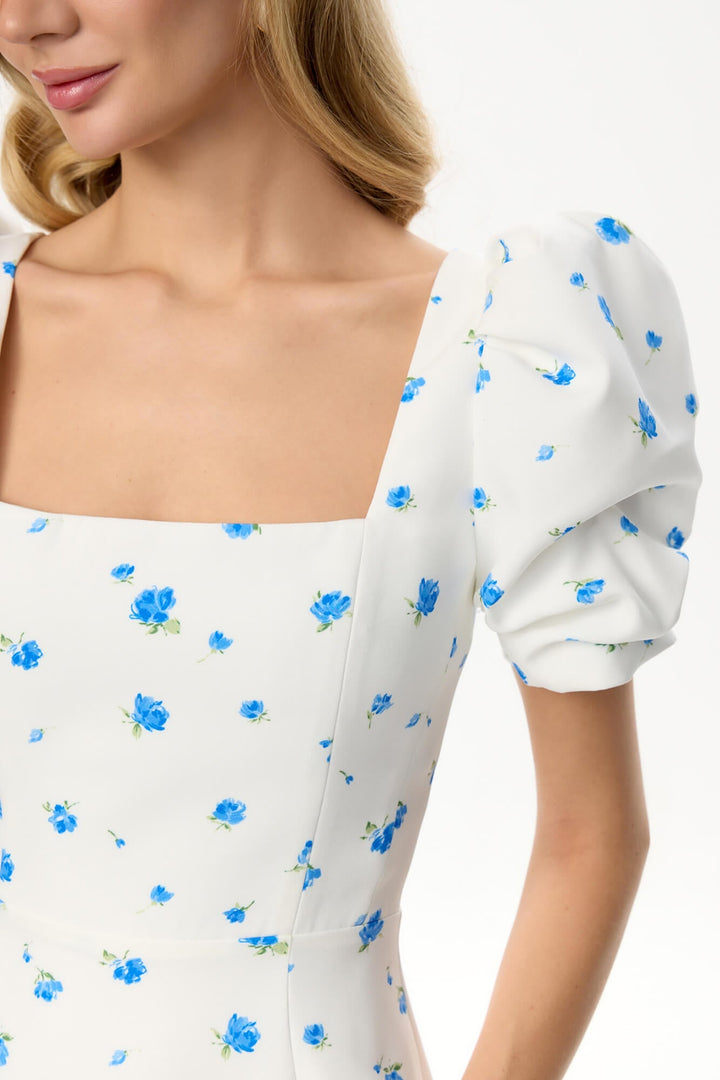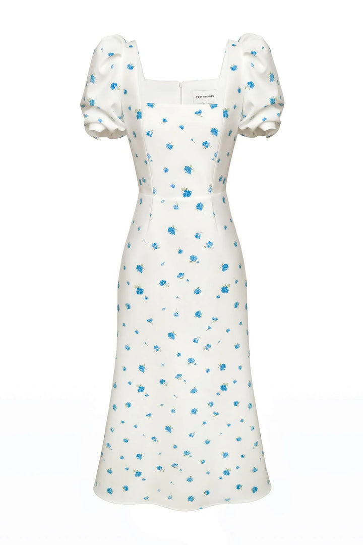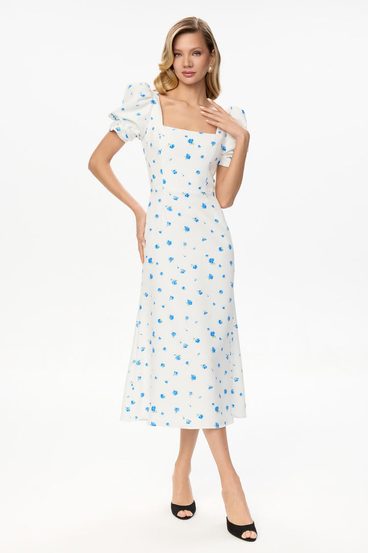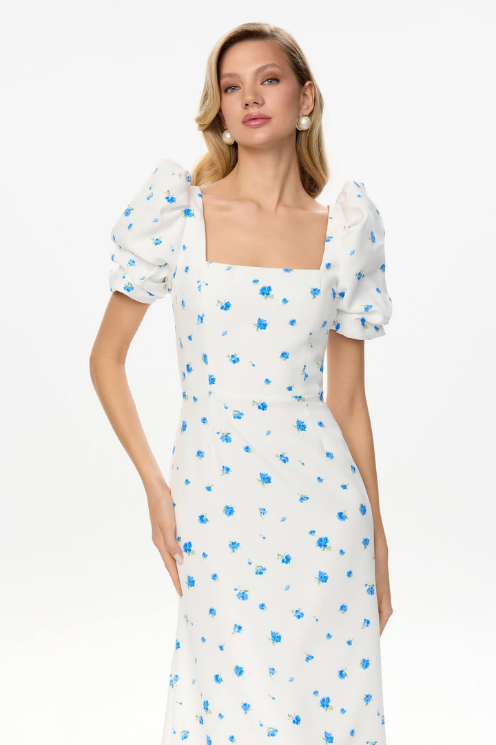 Godet Silhouette Kare Yaka Midi Elbise