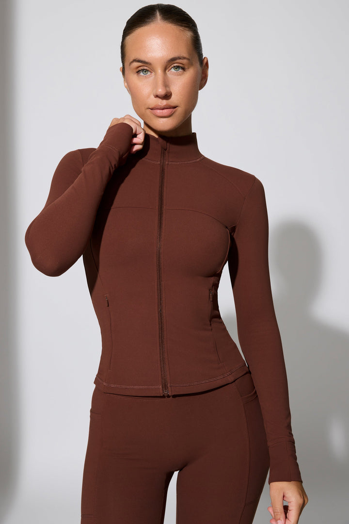 Çikolata Rengi Uzun Kollu Fermuarlı Ceket