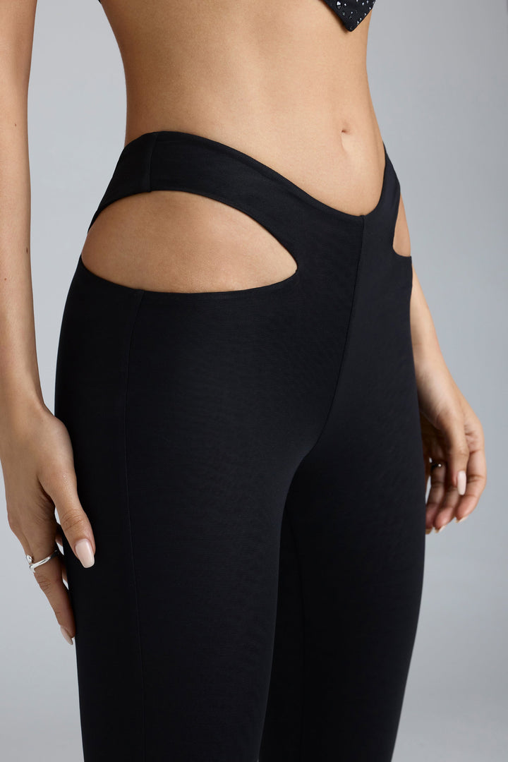 Siyah Petite Metalik Kesimli Düşük Bel Kloş Pantolon