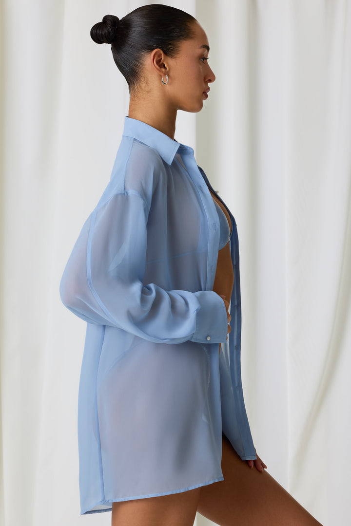 Gök Mavisi İnci Detaylı Büyük Beden Gömlek