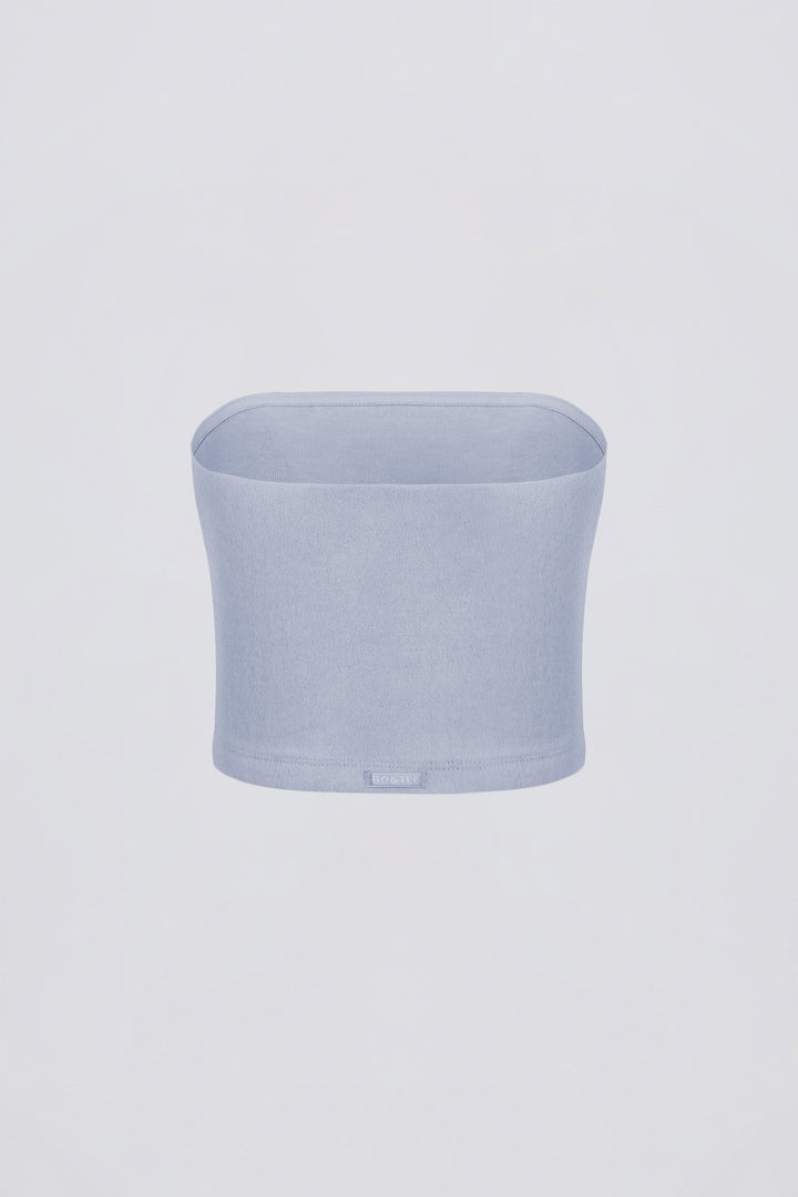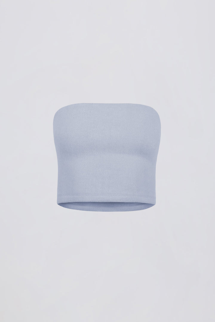 Yumuşak Mavi Fırçalanmış Jersey Bandeau Üst