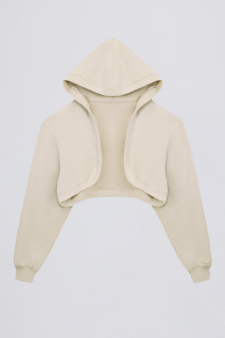 Ekru Renkli Fırçalanmış Jersey Kapüşonlu Kısa Omuzluk