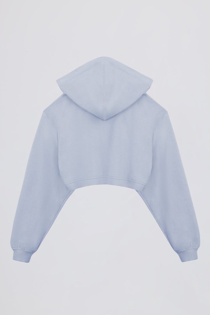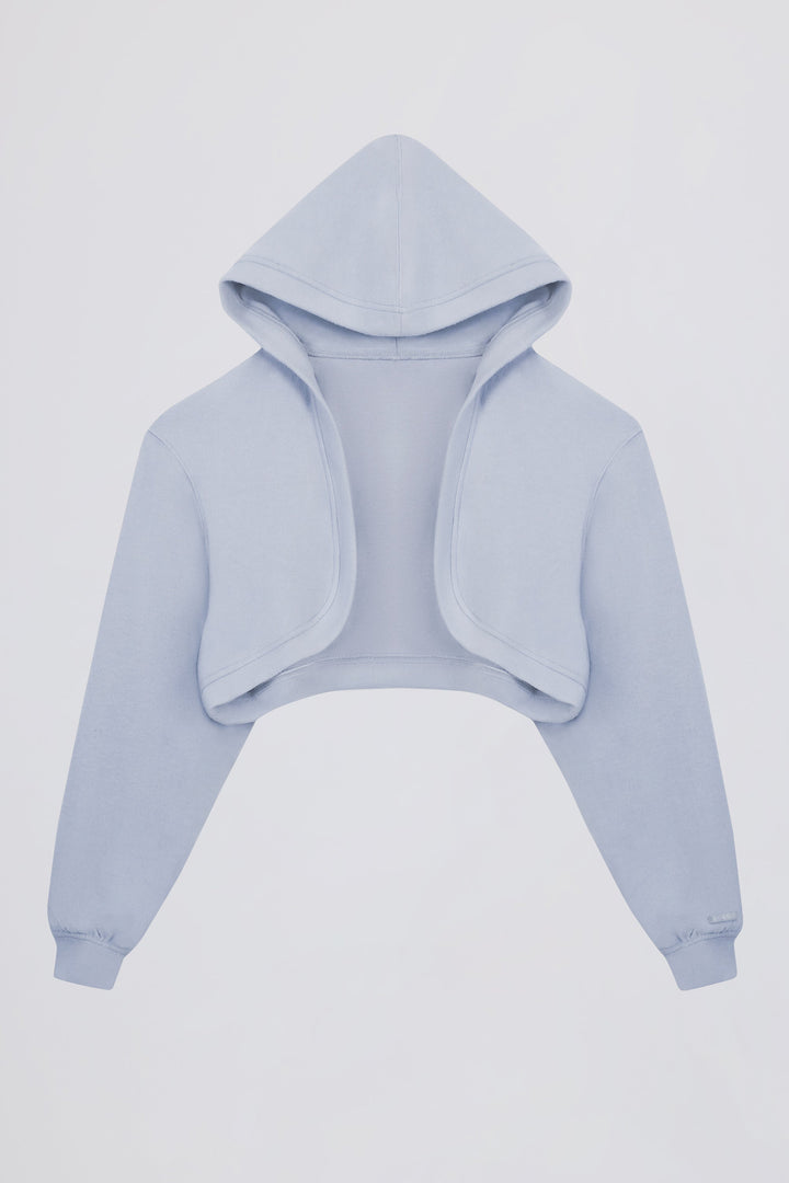 Yumuşak Mavi Fırçalanmış Jersey Kapüşonlu Kısa Omuzluk