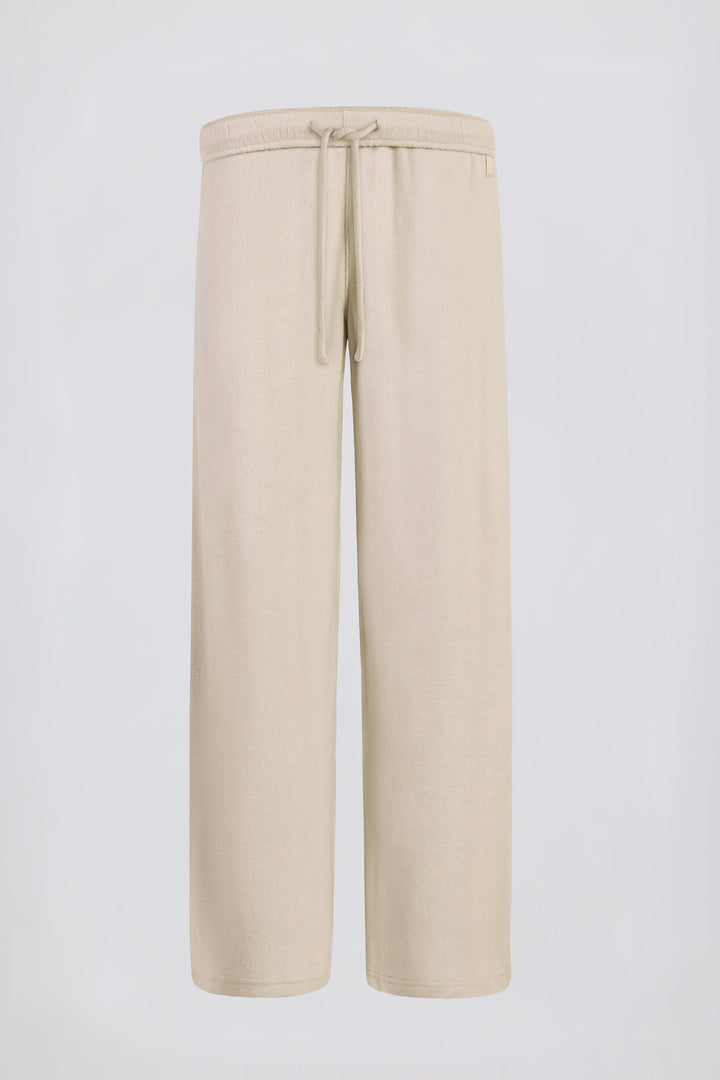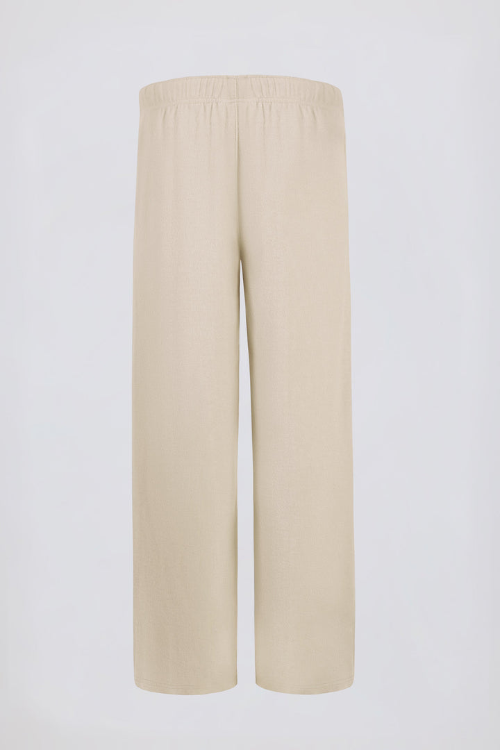 Ekru Renkli Fırçalanmış Jersey Geniş Paçalı Jogger Pantolon