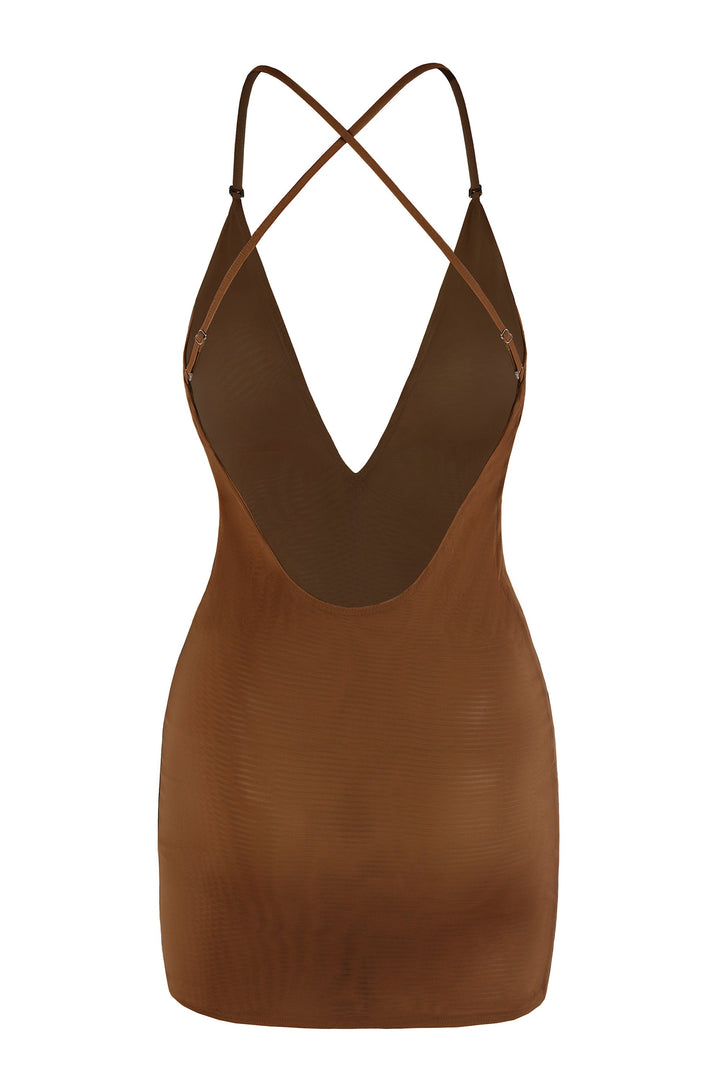 Intimates Kestane Rengi Yumuşak File Çok Yönlü Mini Elbise