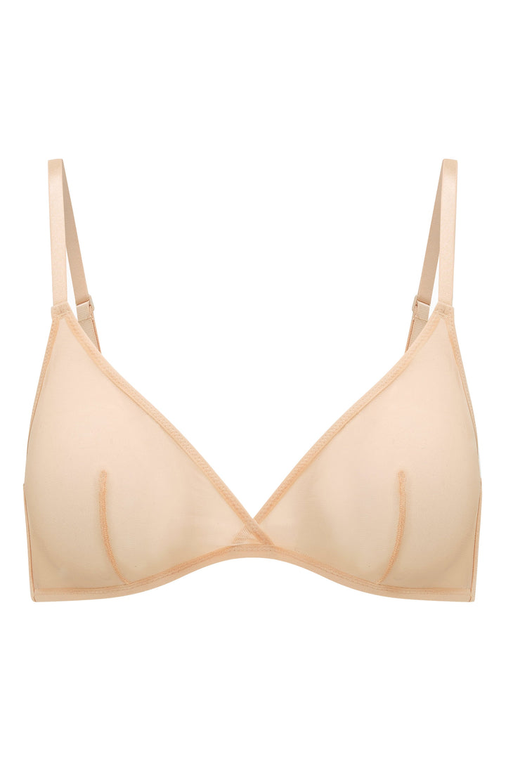 Bej Yumuşak File Tek Katmanlı Üçgen Sütyen