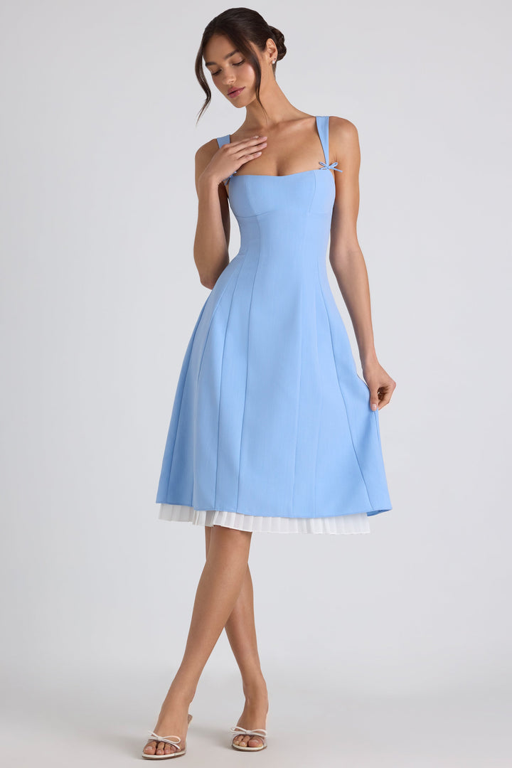 Gök Mavisi Fiyonk Detaylı Pileli A Kesim Midi Elbise