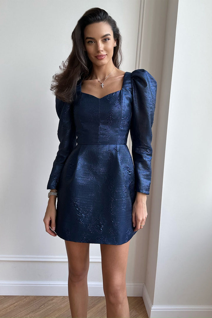 Jakarlı Uzun Kollu Mini Elbise