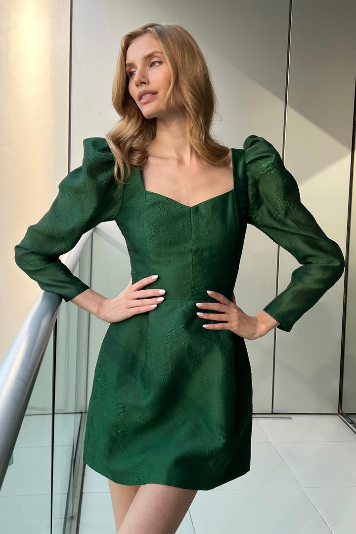 Jakarlı Uzun Kollu Mini Elbise