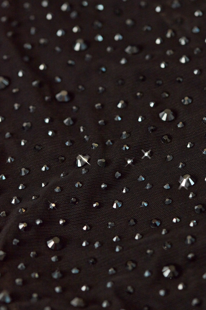 Siyah, İşlemeli, Bağcıklı, Omuzları Açık Mini Elbise