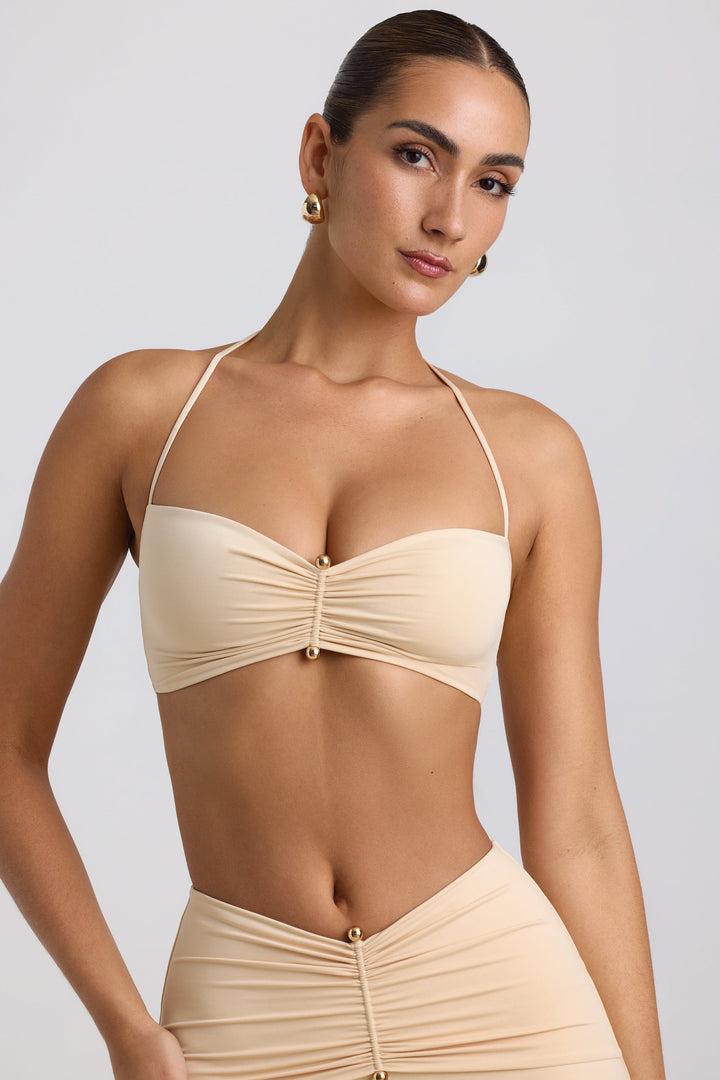 Tereyağı Krem Rengi Slinky Jersey Donanım Detaylı Halter Yaka Bralet