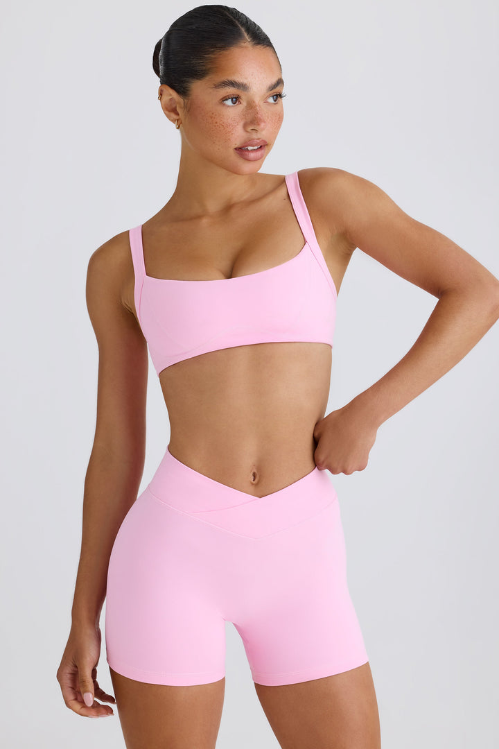 Yumuşak Aktif Kontrast Kesimli Spor Sütyeni Sakız Pembesi