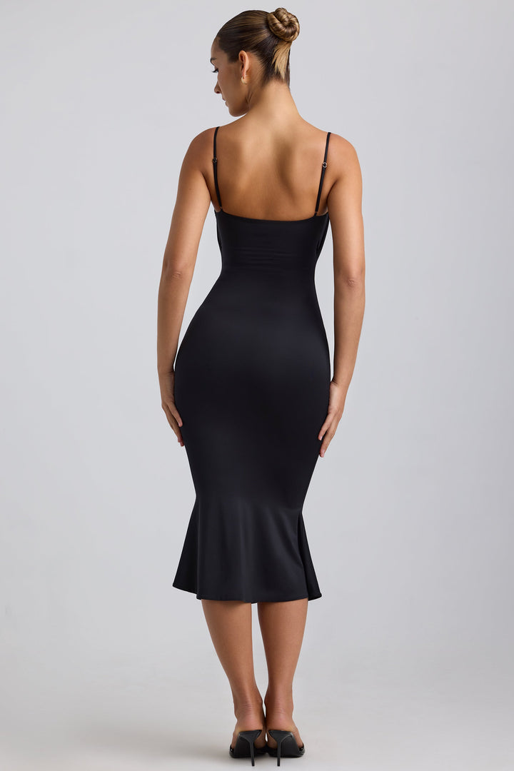 Siyah Slinky Jersey Büzgülü Kesimli Midaxi Elbise
