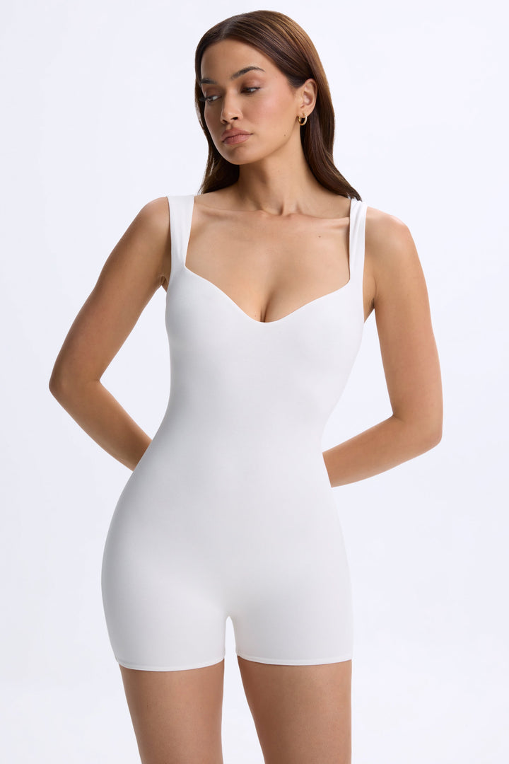 Beyaz Kalp Yakalı Tek Parça Kıyafet