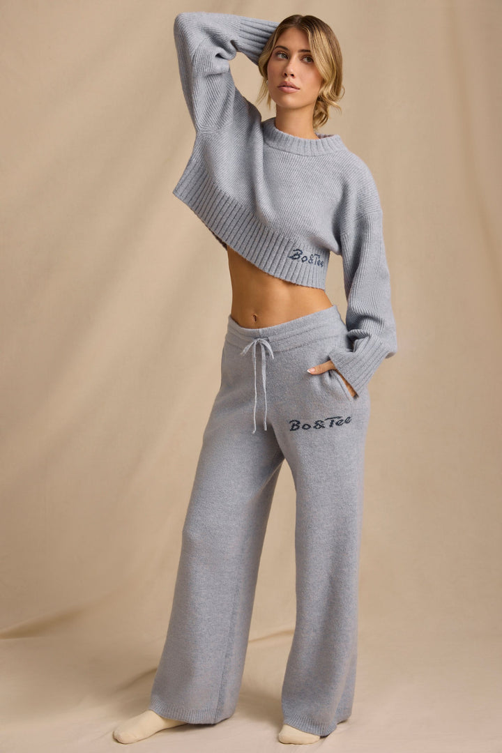 Yumuşak Mavi Orta Bel Geniş Paça Jogger Pantolon