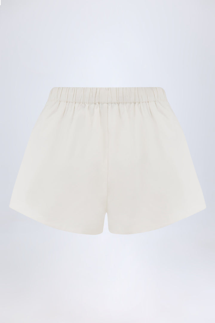 Beyaz Orta Bel Pamuklu Poplin Şort
