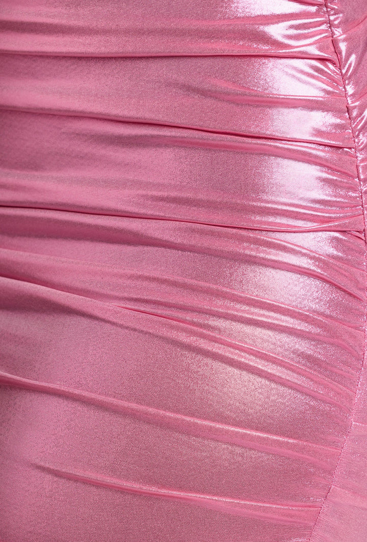 Gül Pembesi Uzun Kollu Metalik Mini Jersey Elbise