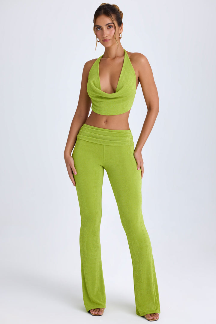 Armut Yeşili Uzun Büzgülü Orta Bel Pantolon