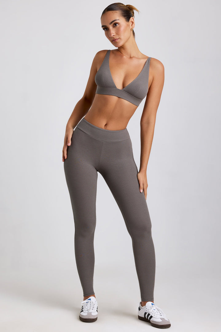 Gri Ribanalı Modal Yüksek Bel Tayt