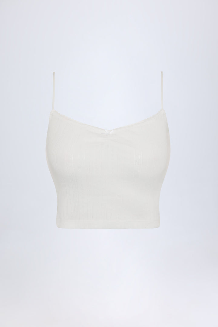 Beyaz Pointelle Büzgülü Atlet Kısa Üst