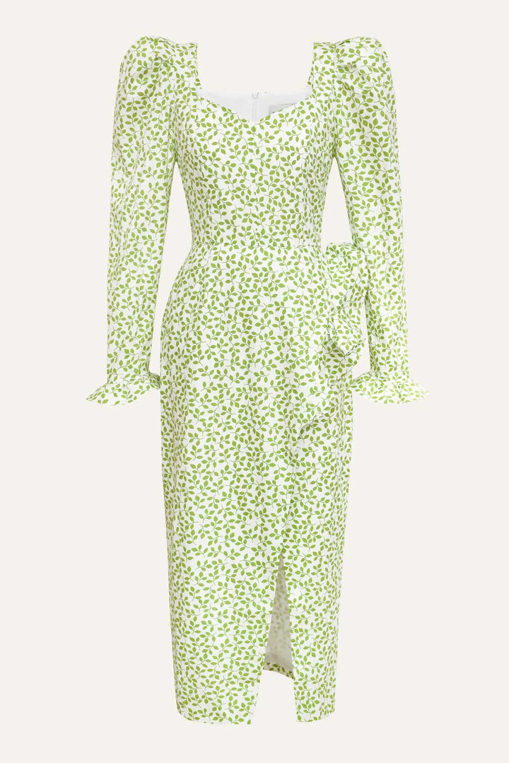 Uzun Kollu Volanlı Midi Elbise