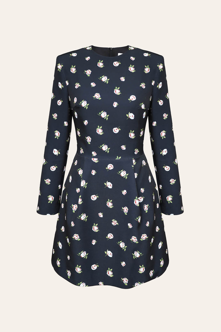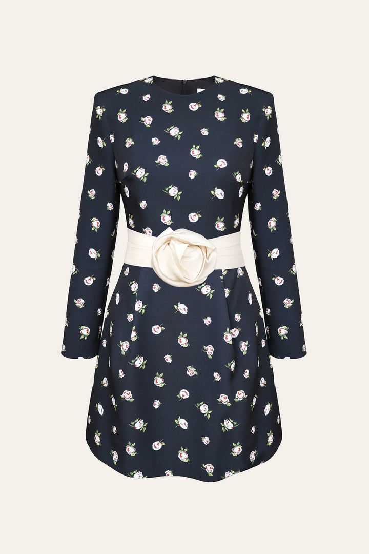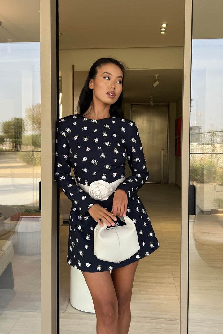 Çıkarılabilir Gül Kemerli Uzun Kollu Mini Elbise