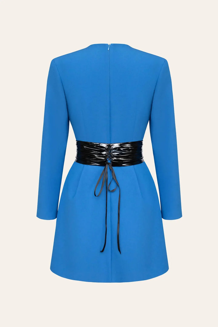 Çıkarılabilir Gül Kemerli Uzun Kollu Mini Elbise