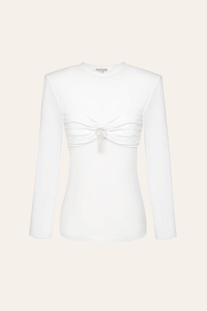Volanlı Göğüs Uzun Kollu Örgü Gömlek
