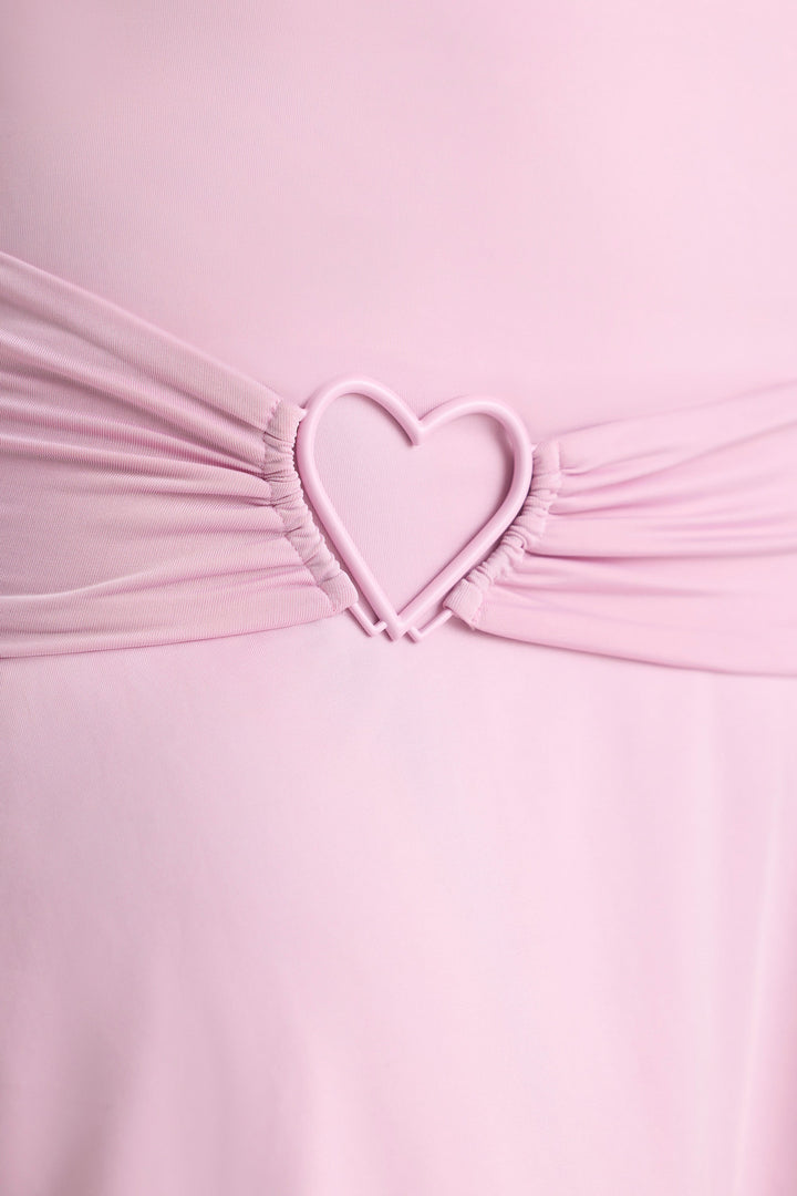 Yumuşak Pembe Kalp Detaylı Kapüşonlu Yaka Mini Elbise