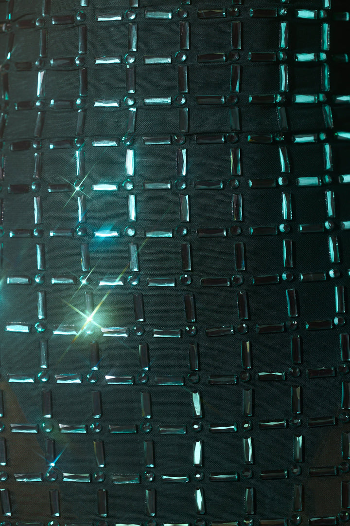 Zümrüt Yeşili Süslemeli A Kesim Mini Elbise