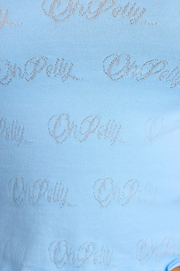 Bebek Mavisi Uzun Kollu Yuvarlak Yakalı Pointelle Kısa Üst