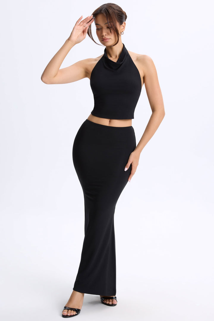 Siyah Kapüşonlu Yaka Açık Sırtlı Üst