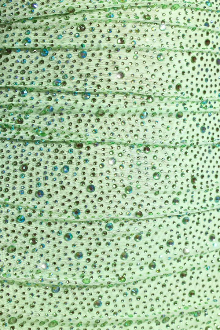 Fıstık Yeşili Süslemeli Drapeli Kapüşonlu Yaka Mini Elbise