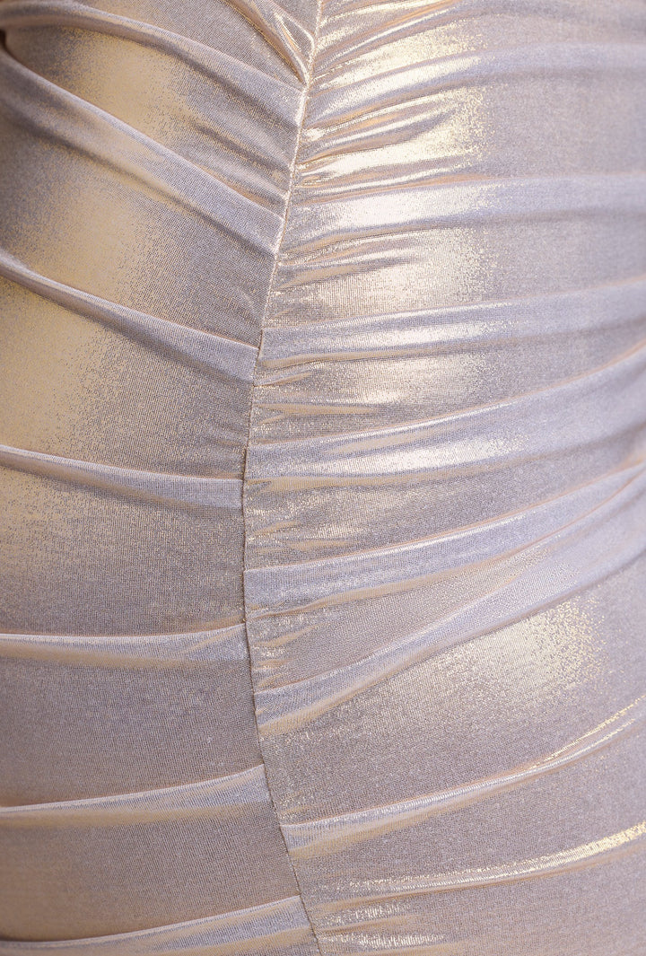 Açık Altın Rengi Tek Omuzlu Metalik Mini Jersey Elbise