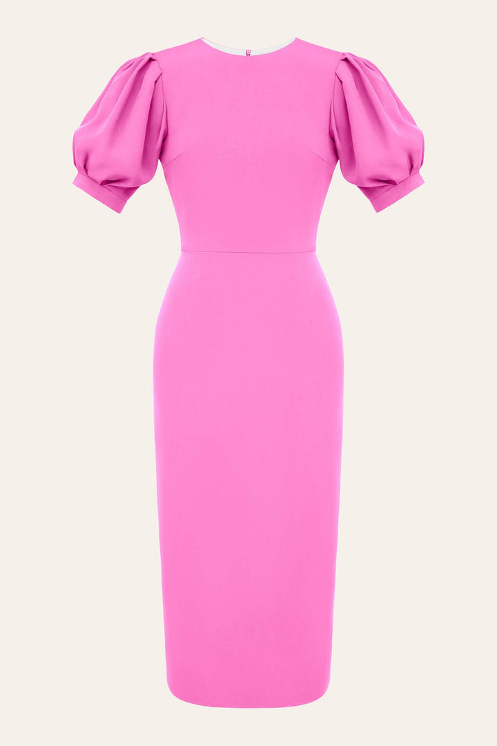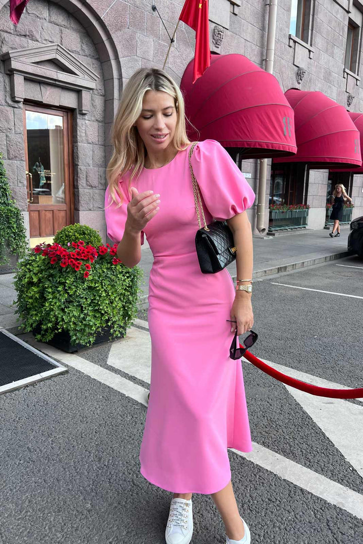 Godet Silhouette Puf Kollu Midi Elbise