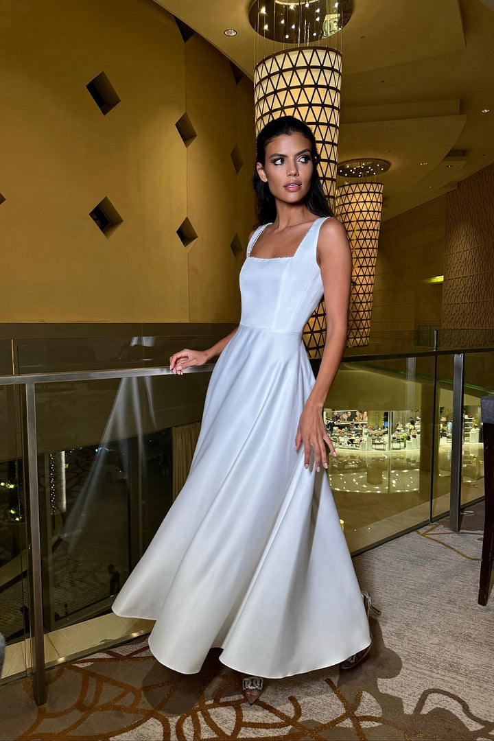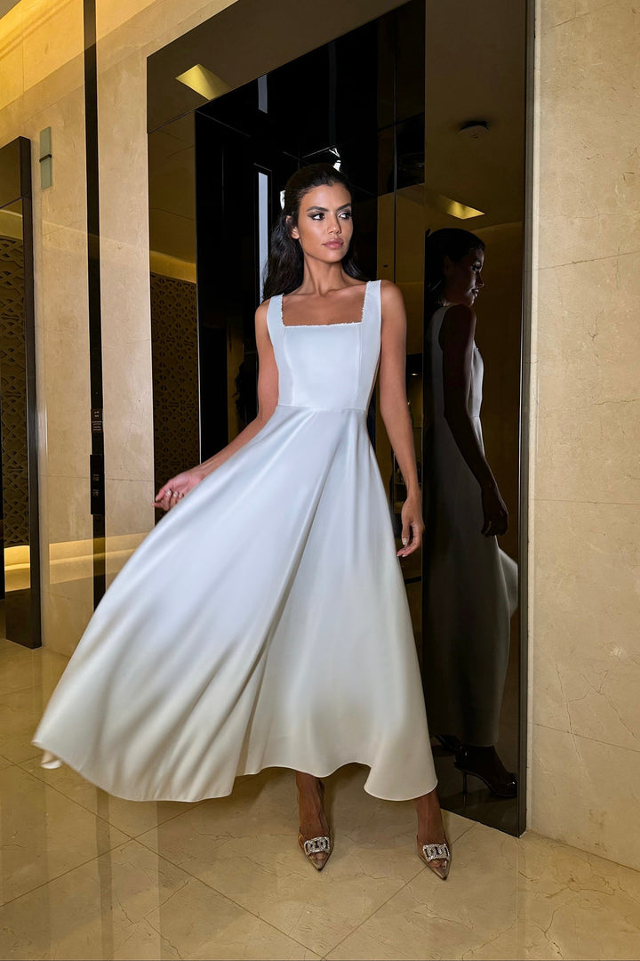 Askılı Süslemeli Midi Elbise