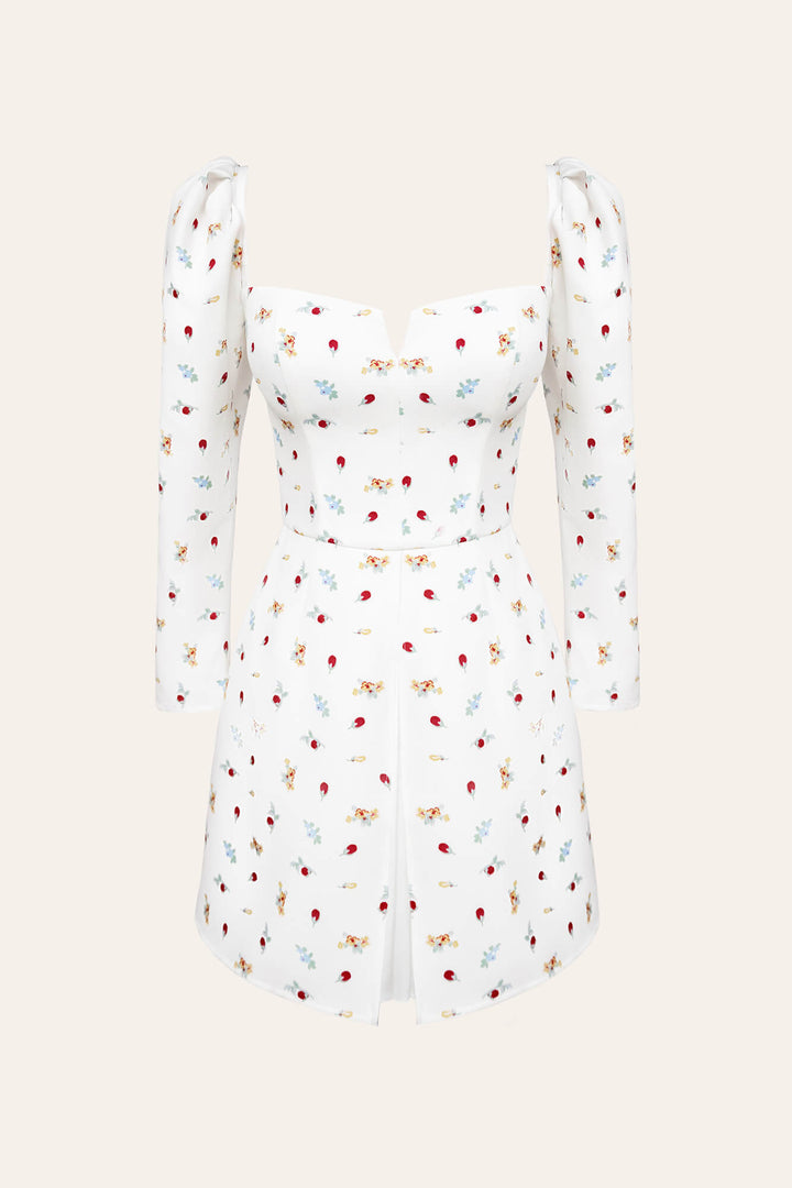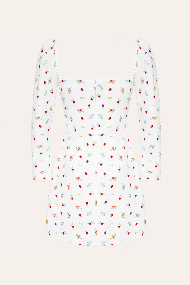 Berry Baskılı Uzun Kollu A Kesim Mini Elbise