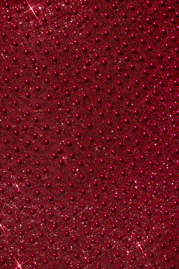 Kırmızı İşlemeli Kalp Yaka Mini Elbise