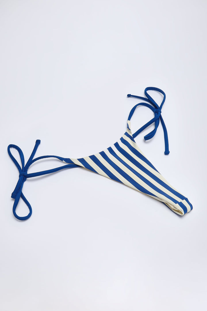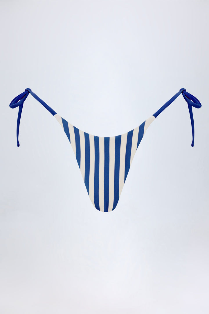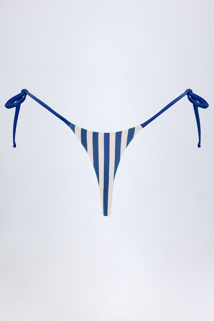 Deniz Mavisi Çizgili Yan Bağlamalı Tanga Bikini Altı
