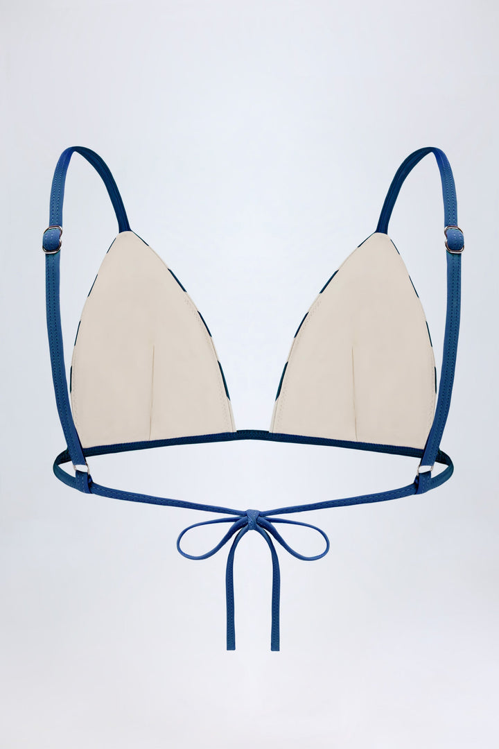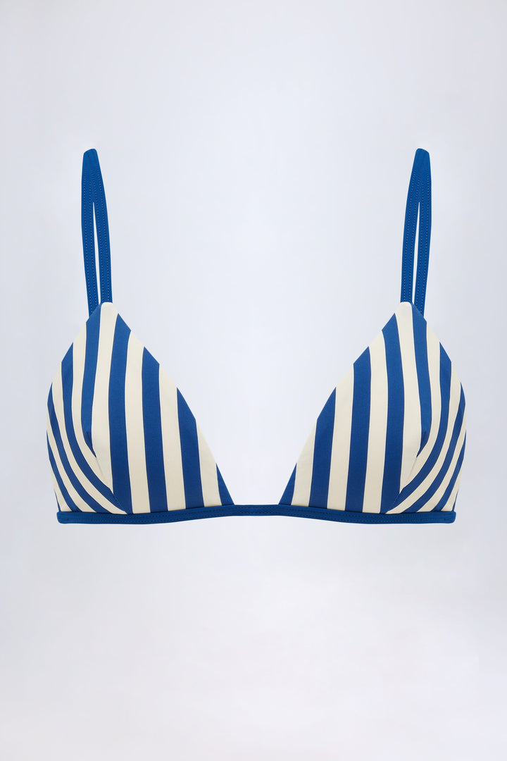 Deniz Mavisi Çizgili Üçgen Bikini Üstü