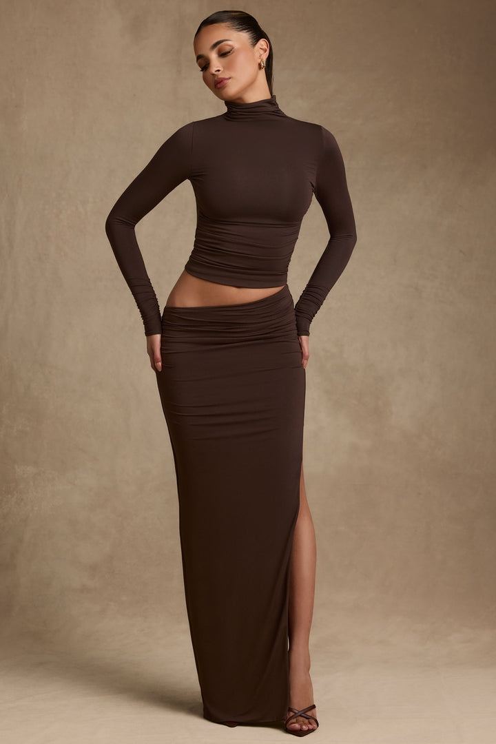 Çikolata Kahverengi Modal Asimetrik Bel Uzun Etek