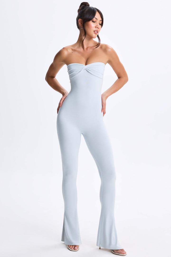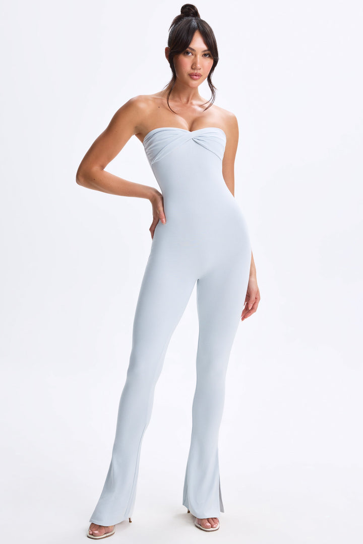 Toz Mavisi Bükümlü Önden Bölünmüş Etek Ucu Kloş Tulum