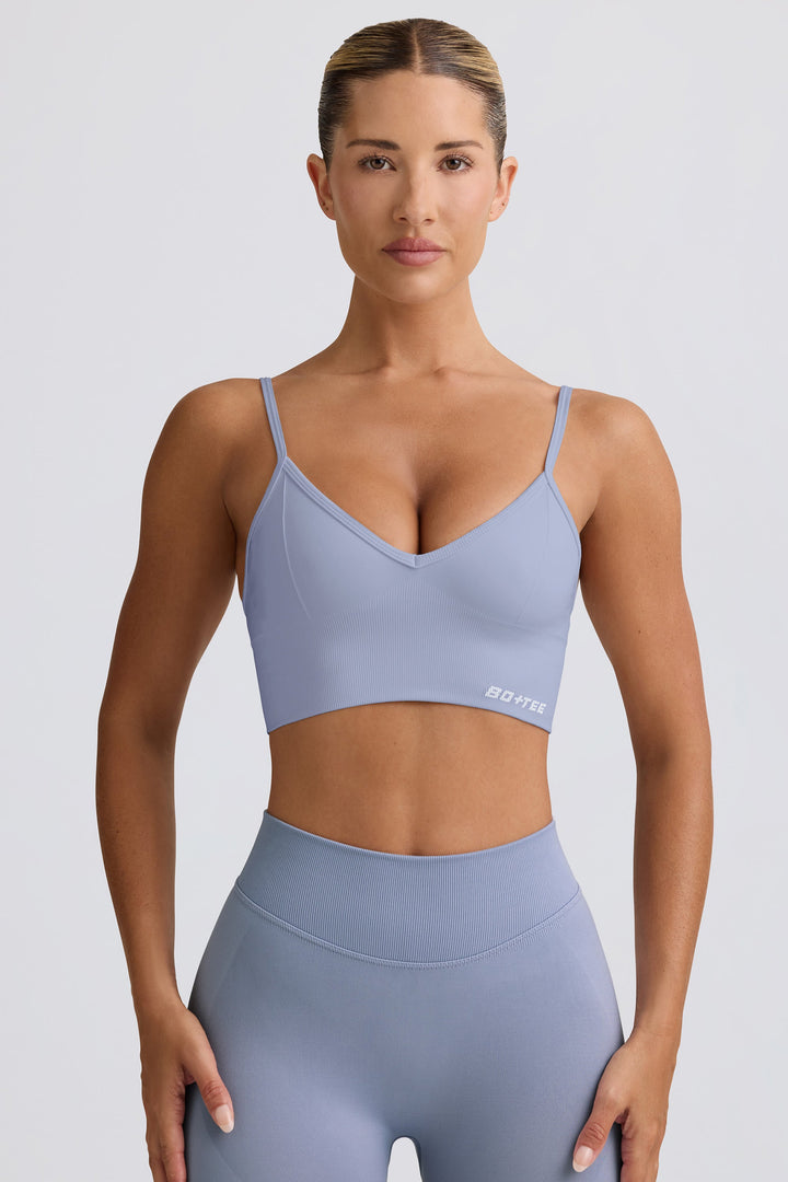 Define Luxe V Yaka Spor Sütyeni Mavi Gri