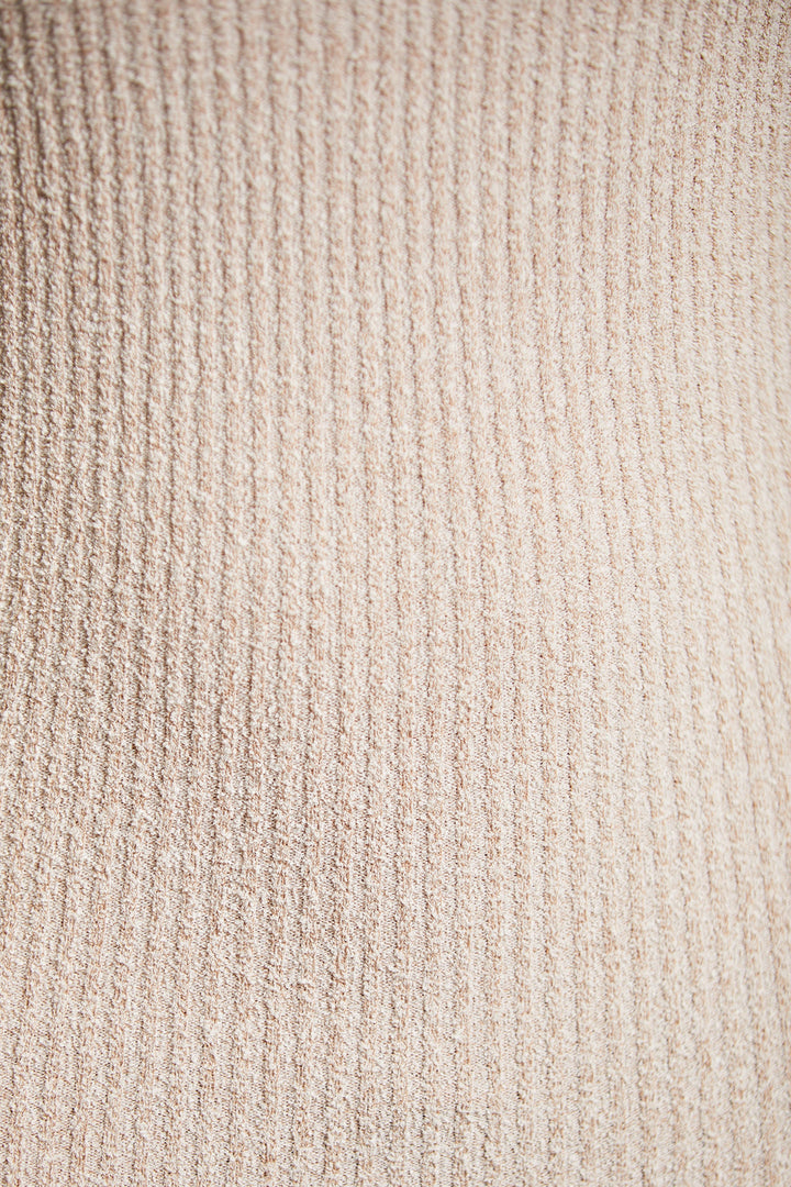 Bej Rengi Omuzları Açık Uzun Kollu Mini Elbise