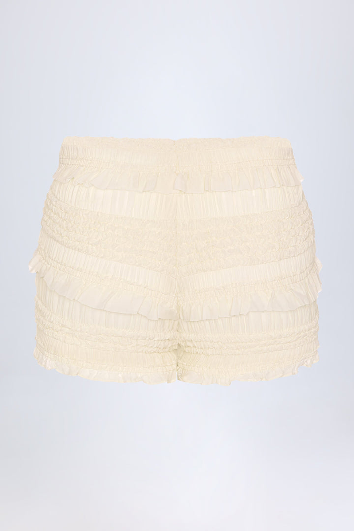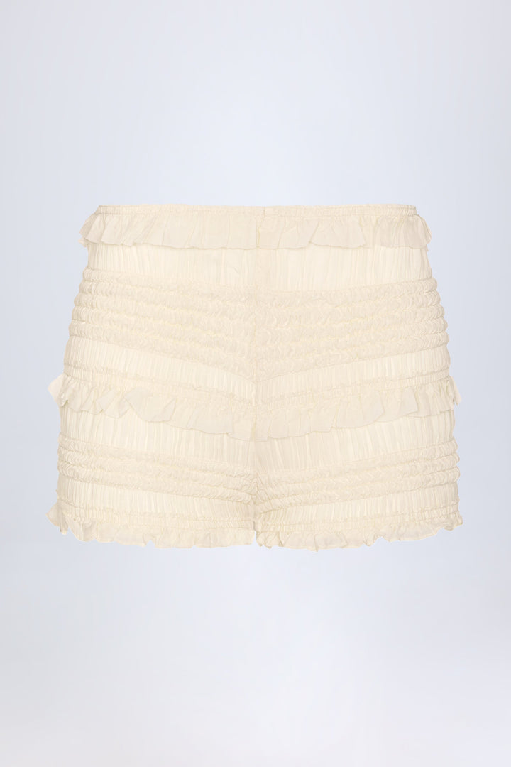 Fildişi Rengi Fırfırlı Orta Bel Şort