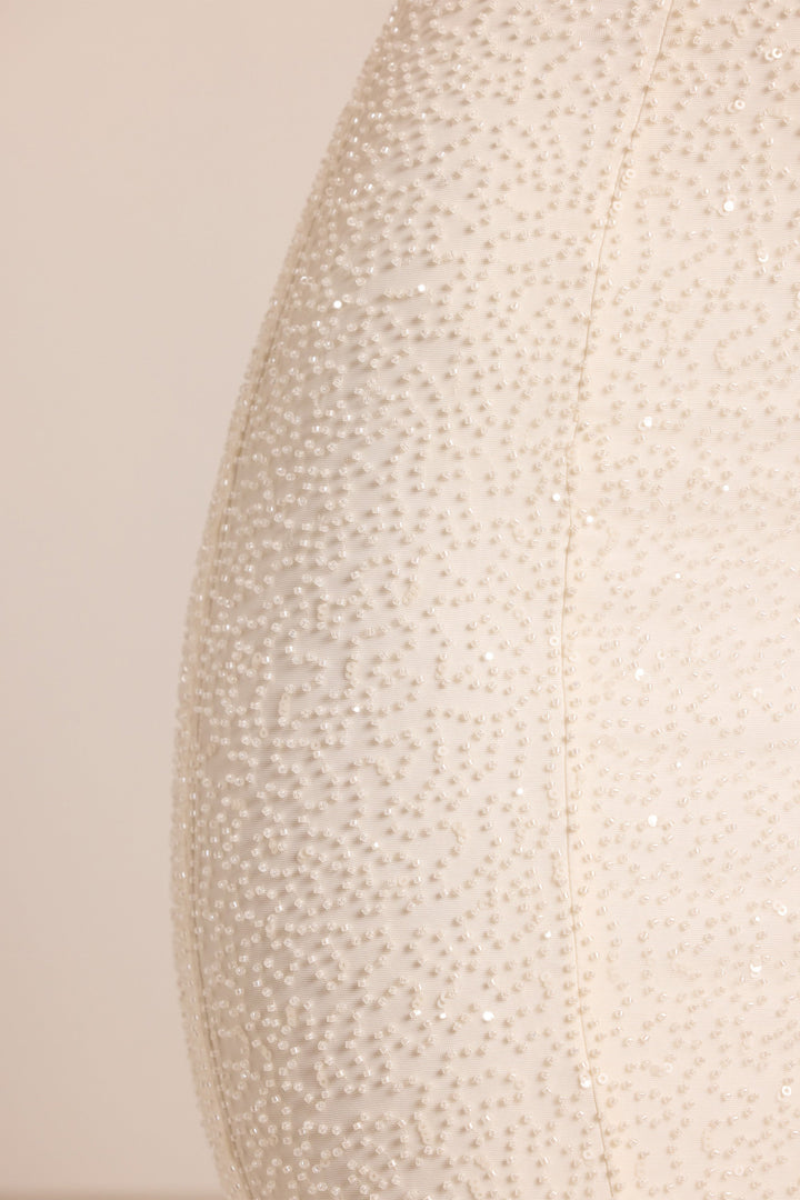 Beyaz Renkli Süslemeli Bandeau Kapüşonlu Uzun Elbise
