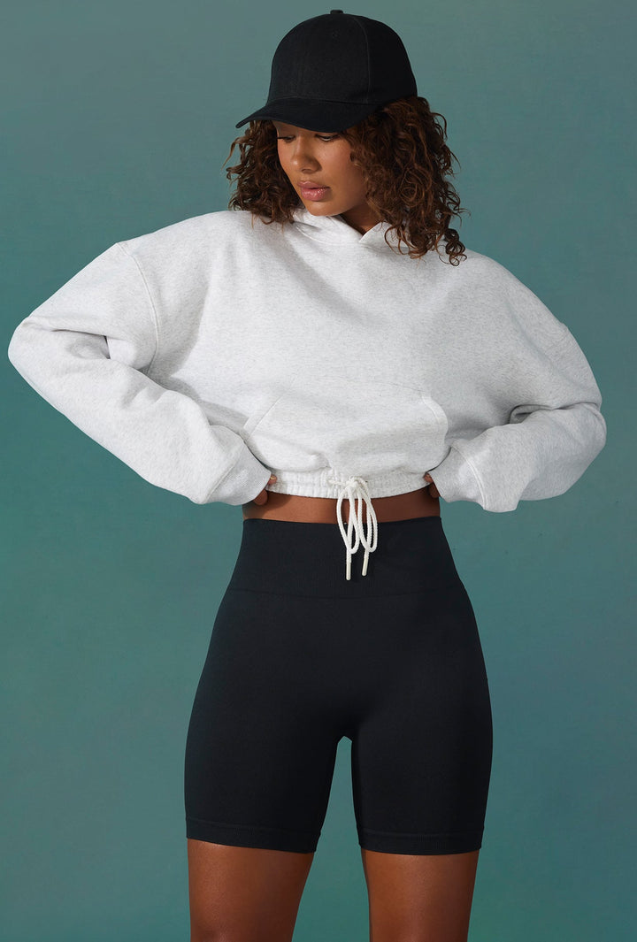 Buz Grisi Kısa Bağcıklı Kapüşonlu Sweatshirt